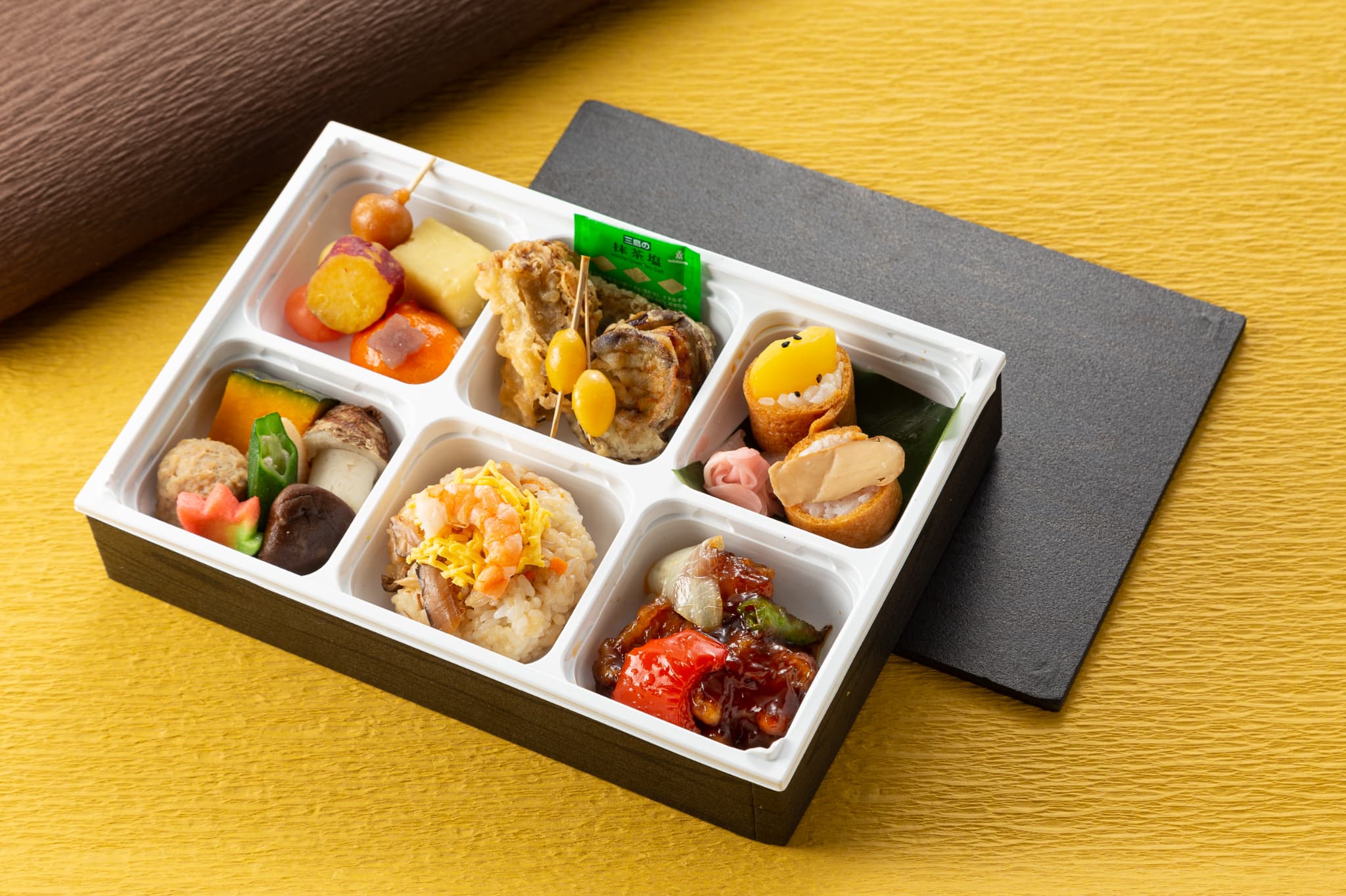 お品書き季節の御飯と鶏の柚庵焼き、 鰆の西京焼き、カニ爪フライ、 煮物盛合せ、金平ごぼう、 天ぷら盛合せ (さつま芋・エリンギ・インゲン天ぷら) 春雨サラダ、卵焼き アレルギー:小麦・大豆・卵・乳成分・カニ お茶:なし サイズ:縦 12.5cm 横 33.5cm |