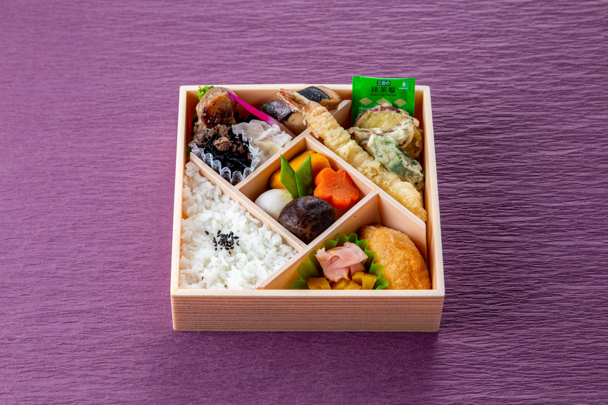 お品書き海老と野菜の天ぷら、煮物盛合わせ、 鶏の香味焼、鯵の照り焼き、 海鮮焼売、ひじき煮、 漬物2種、稲荷寿司、御飯、 アレルギー:小麦、大豆、卵、乳成分、エビ、カニ お茶:なし サイズ:縦 18cm 横 18cm |